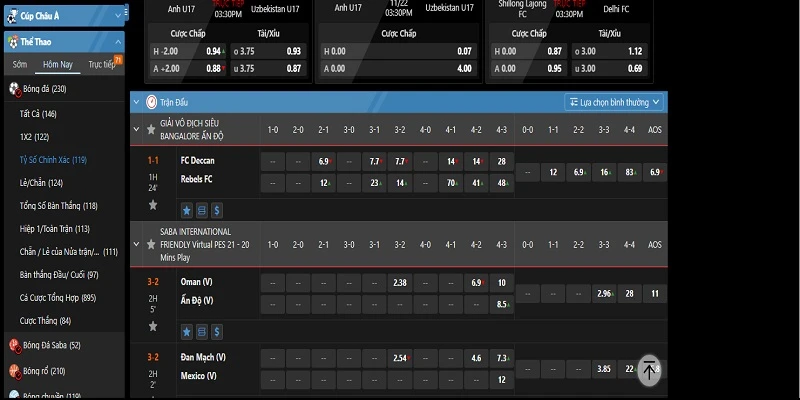 Theo dõi liên tục sự thay đổi của kèo tỉ số